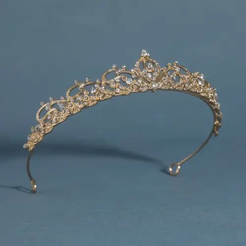Corona Pureza: Fabricada con Materiales de alta calidad en aleación metálica y cristales de stras. Proporciona un ajuste seguro y confortable.